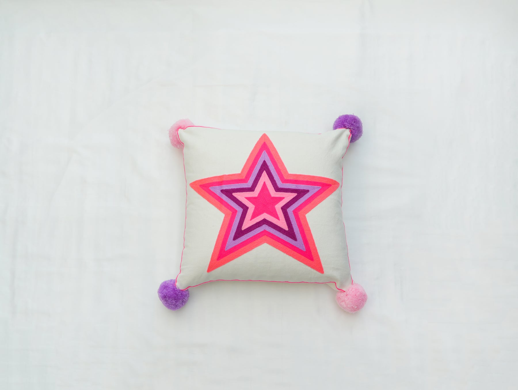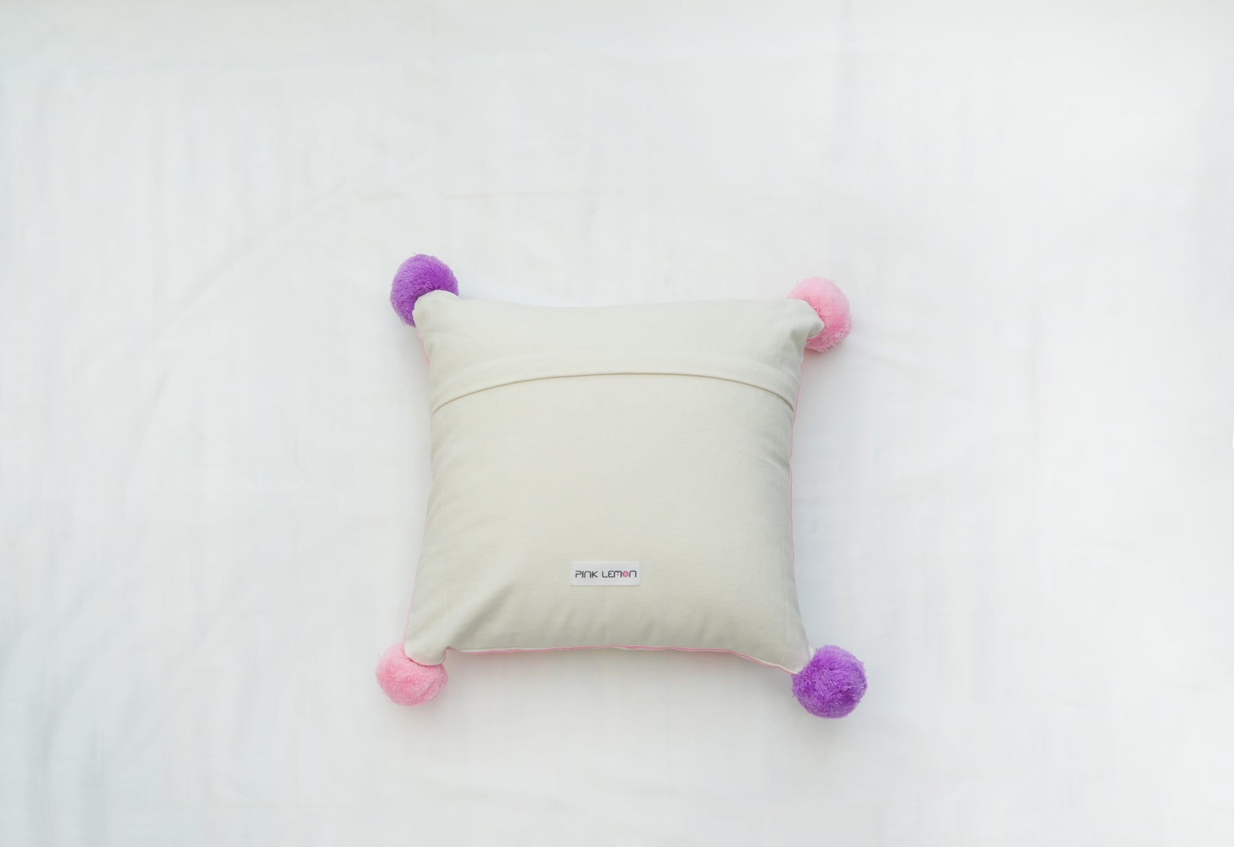 Pink Star embroidered cushion cover made in pure cotton casement fabric in vibrant shades of Pink & Purple to elevate your spaces.