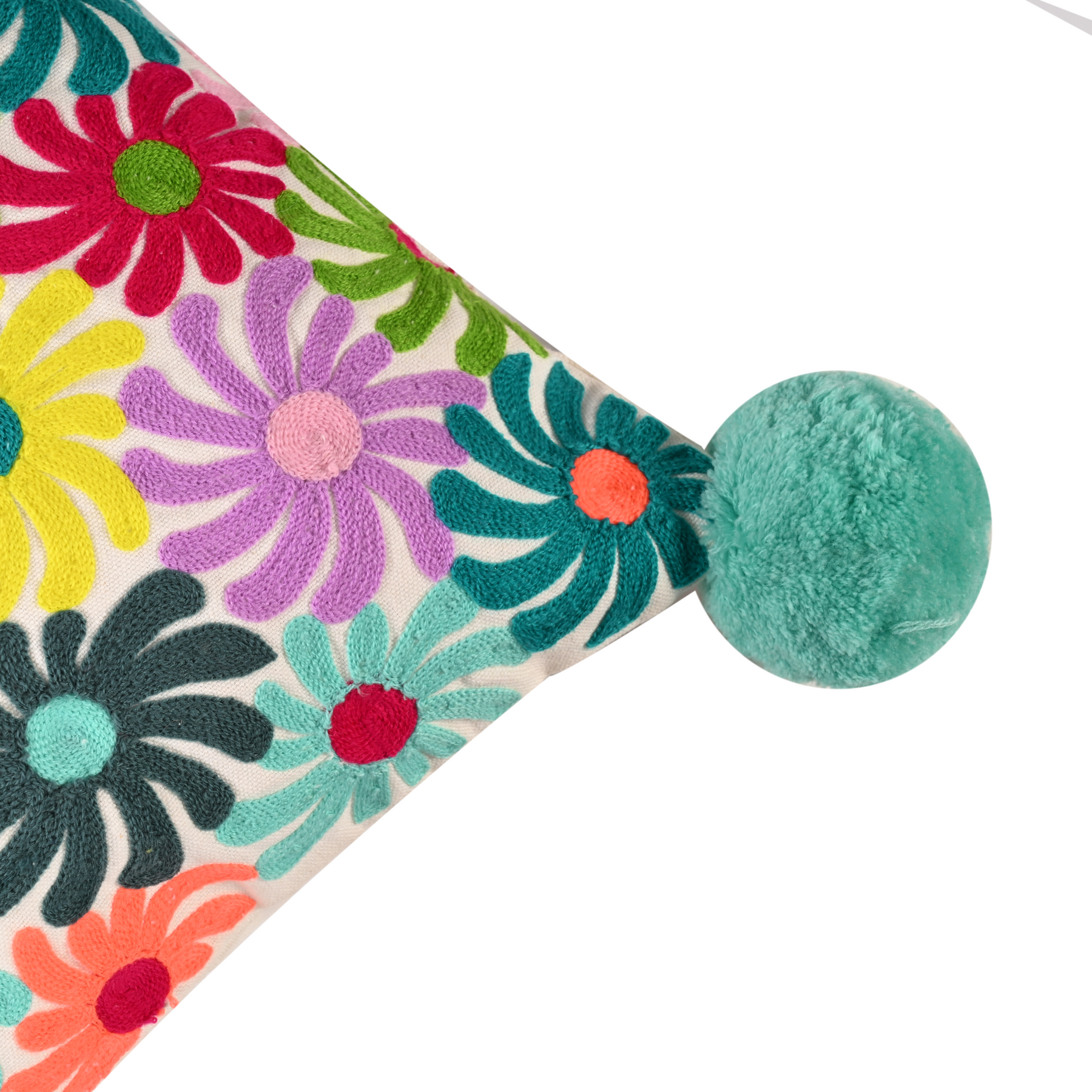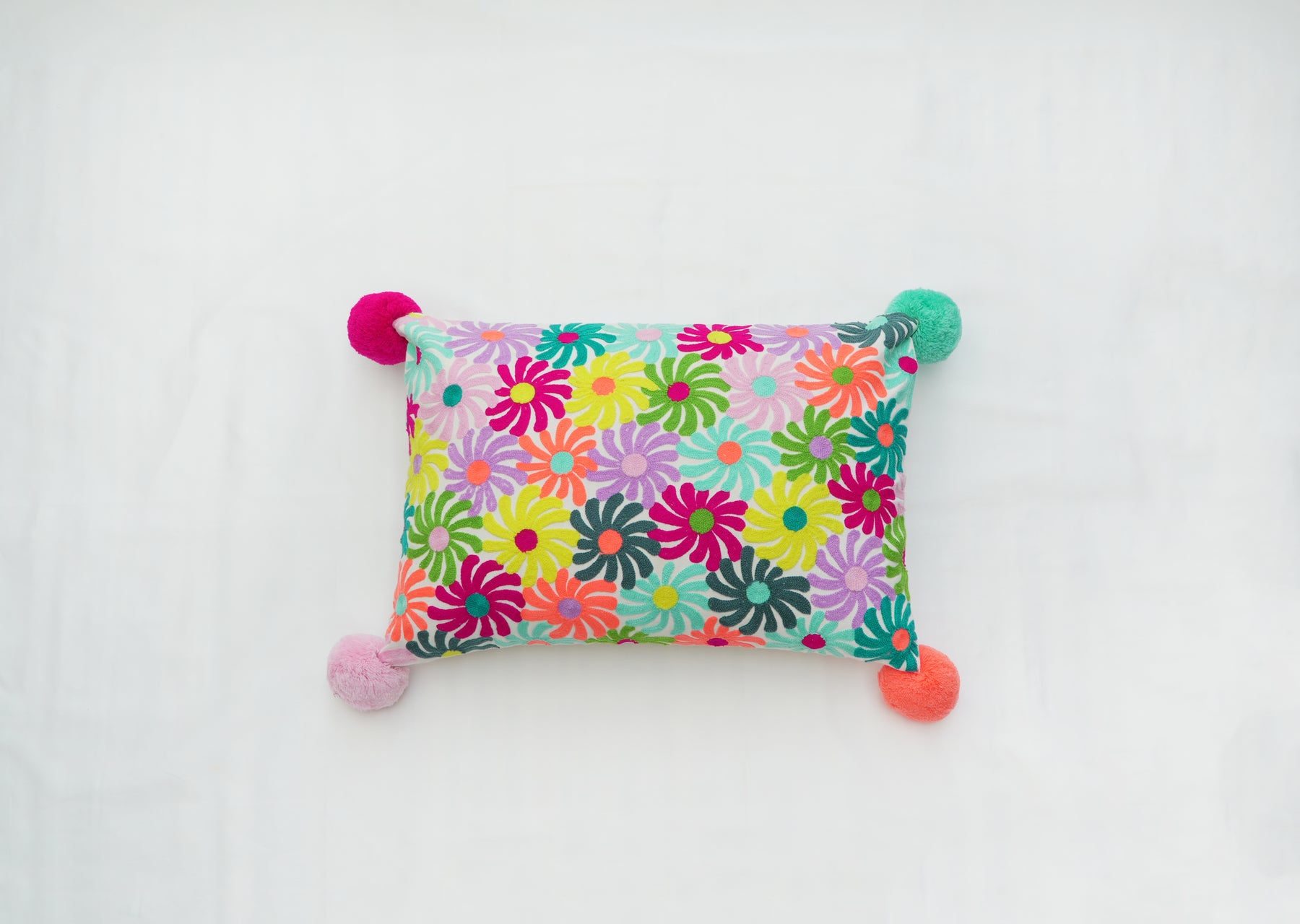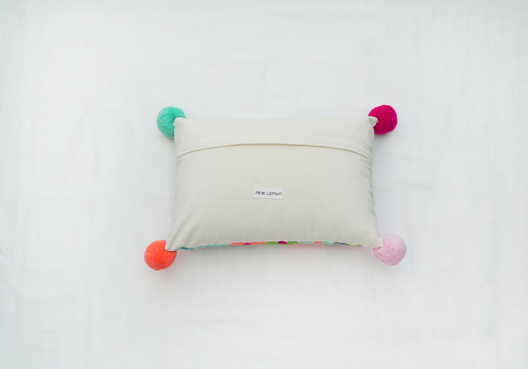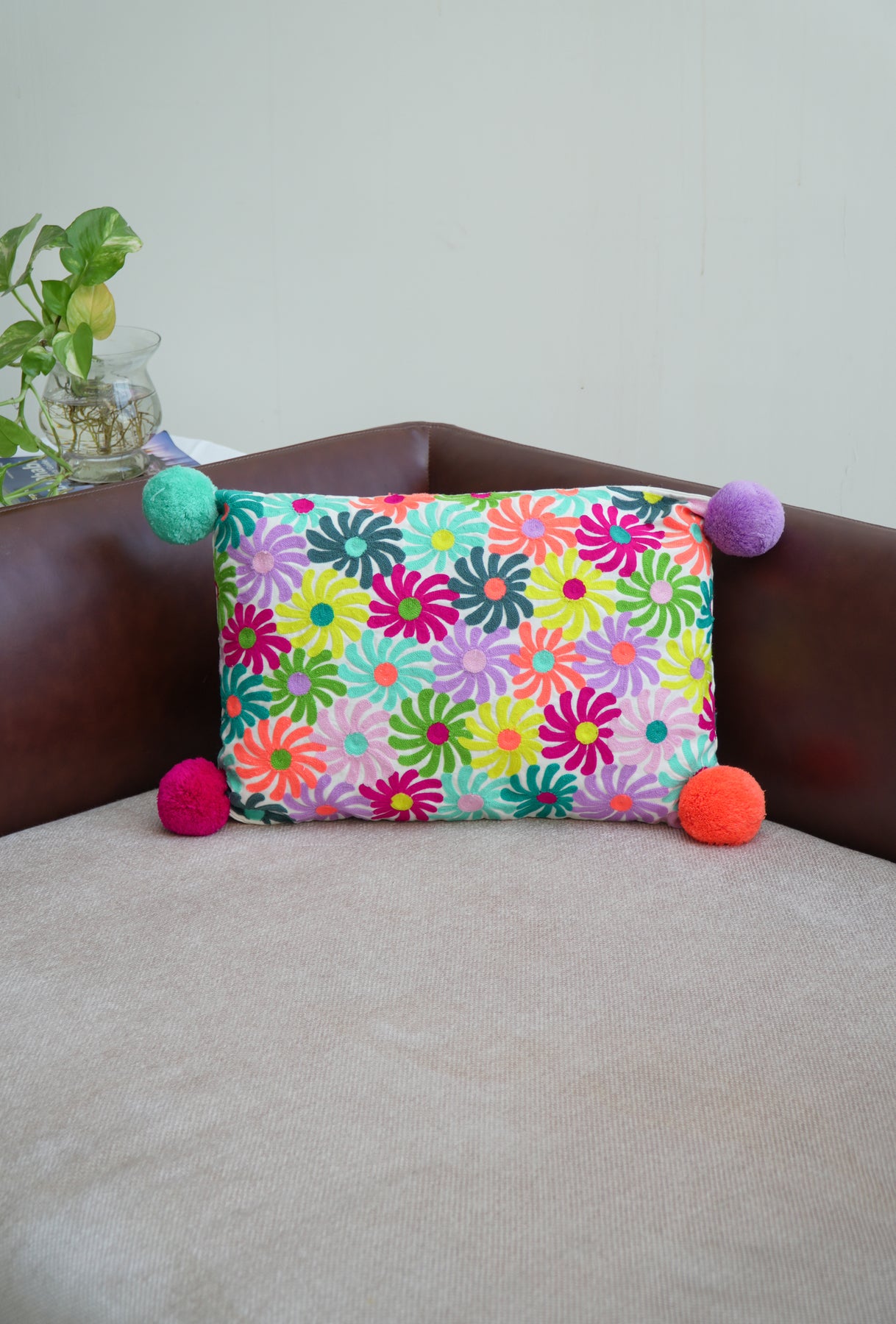 Multi color Spiral embroidered Lumbar cushion cover in pure cotton casement fabric to elevate your spaces. A delightful design for your interiors.