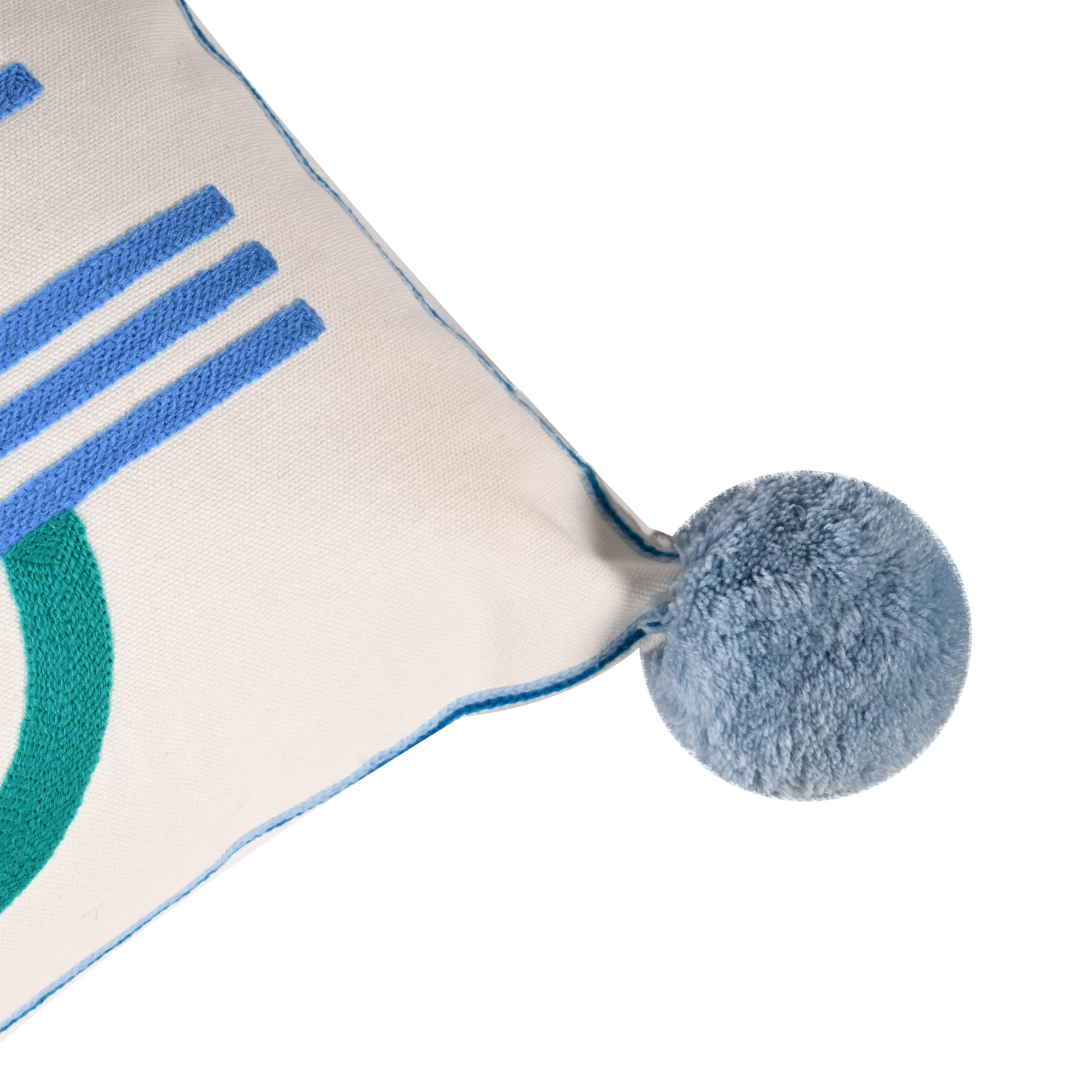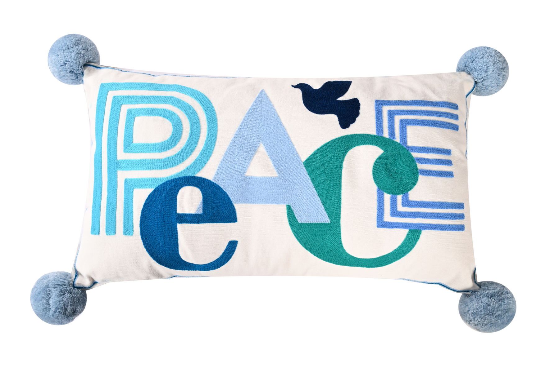 PEACE embroidered cushion cover made in pure cotton casement fabric in vibrant shades of Blue to elevate your personal sitting spaces.