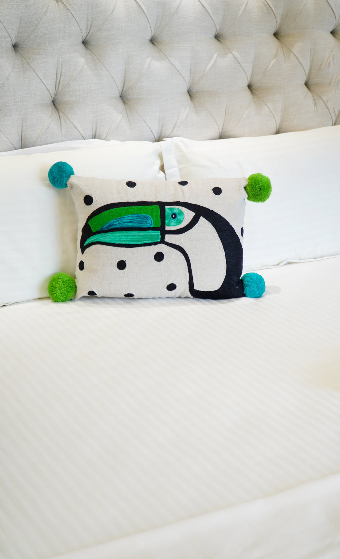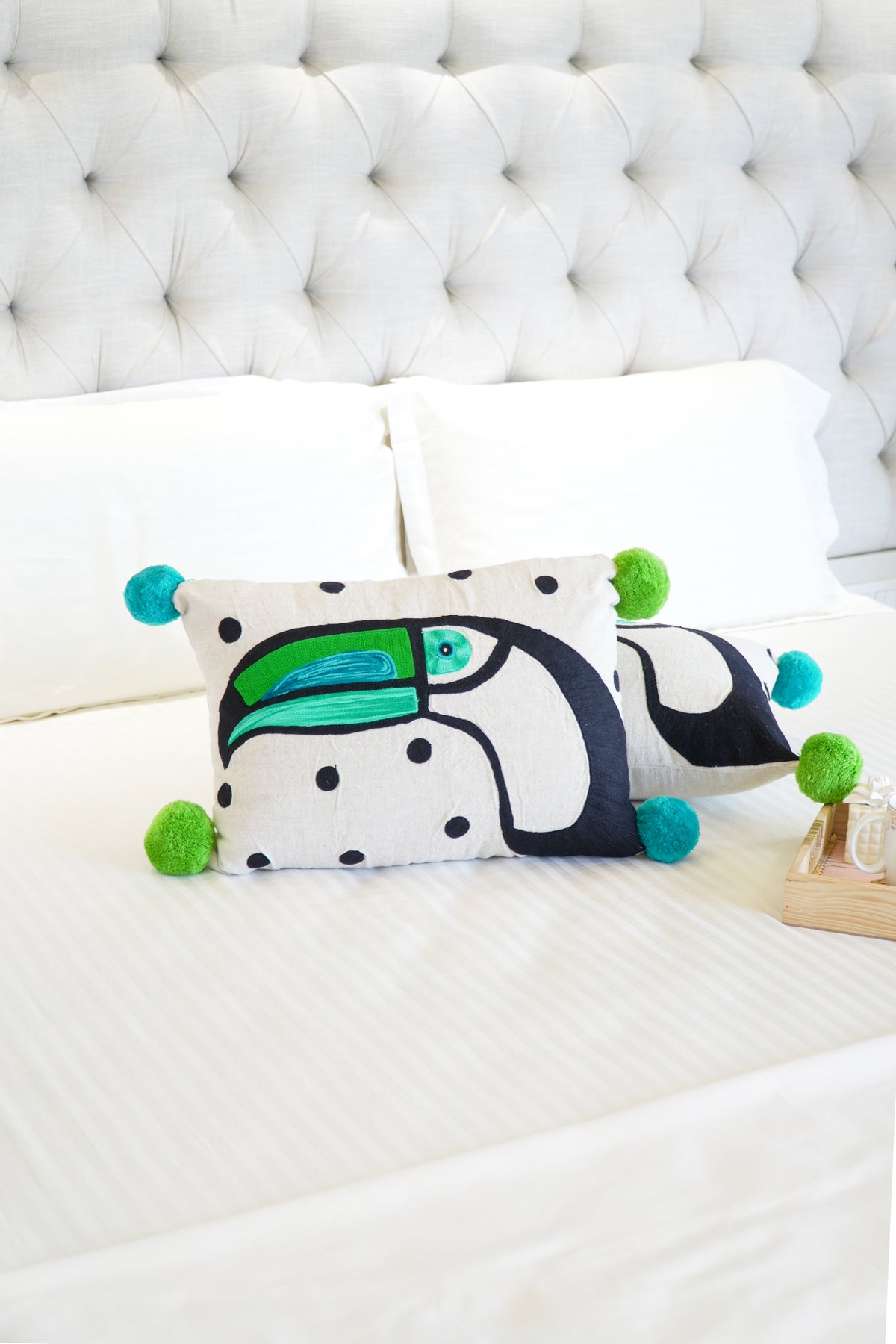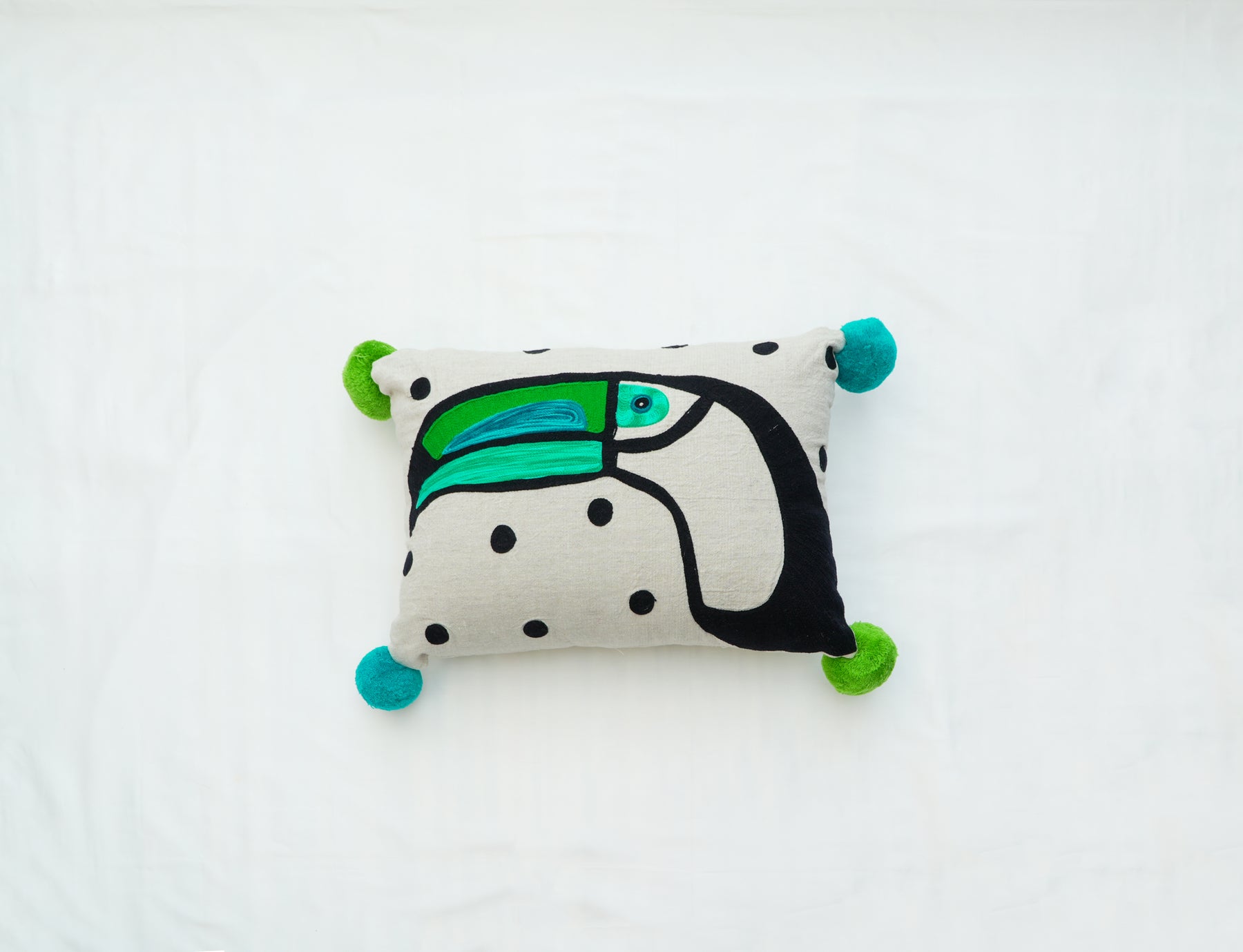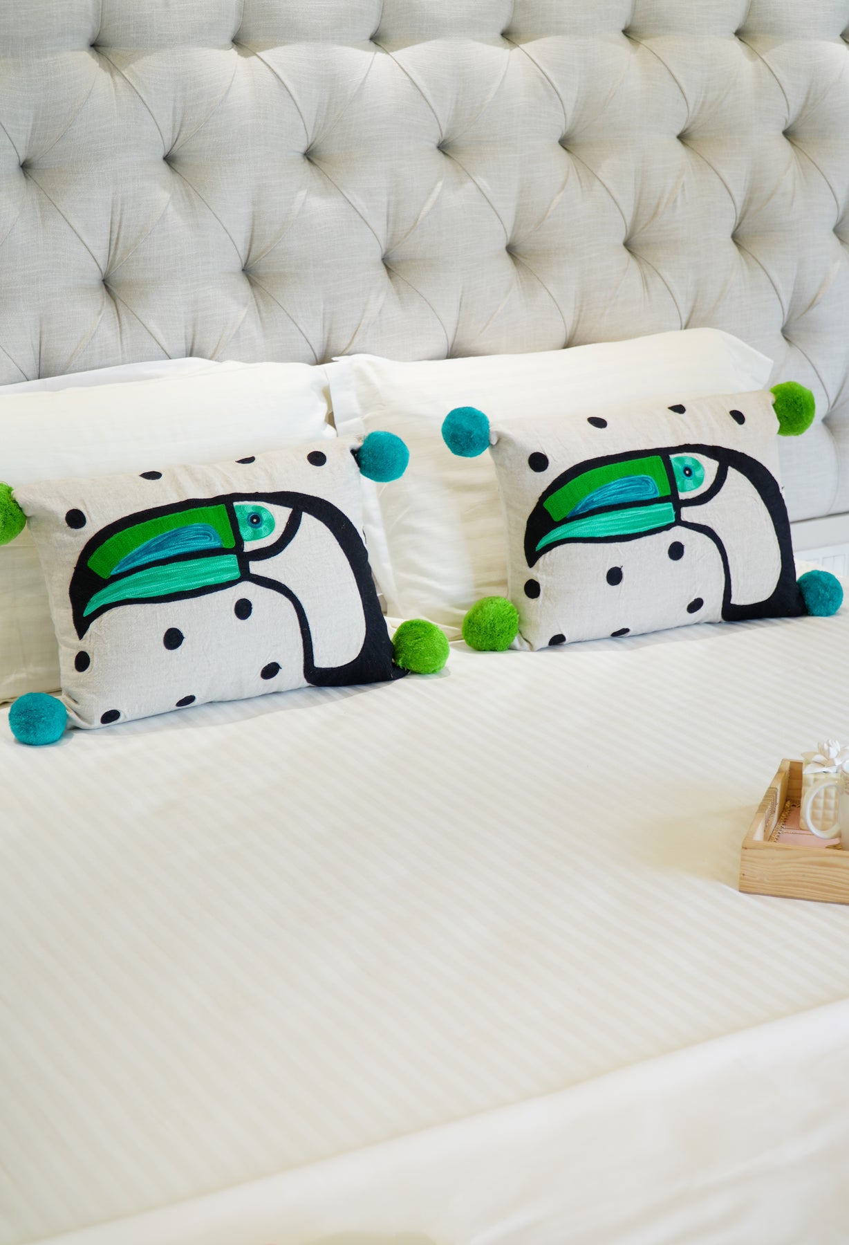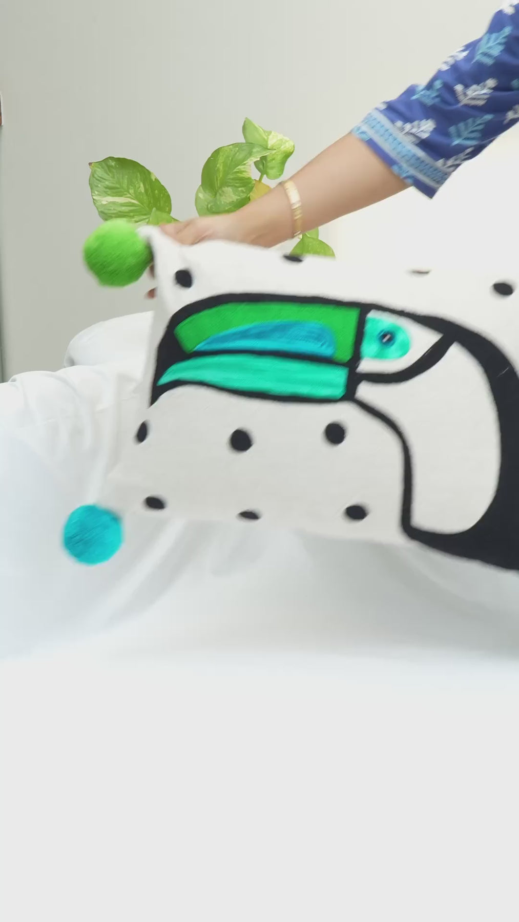 A delicately embroidered floral design cushion cover in pure cotton casement fabric in vibrant shades of Pink & Blue to elevate your spaces.
