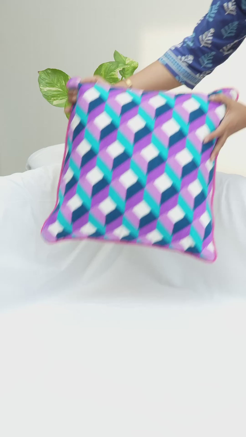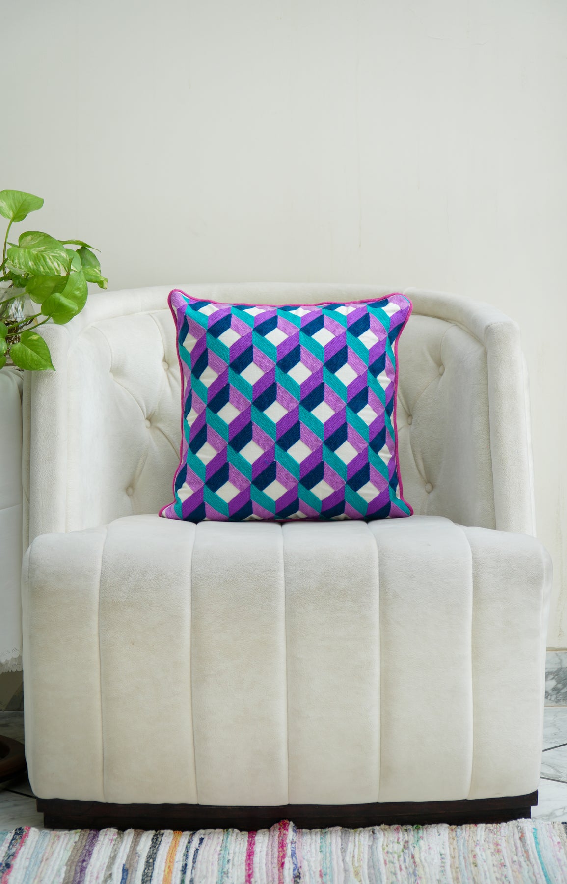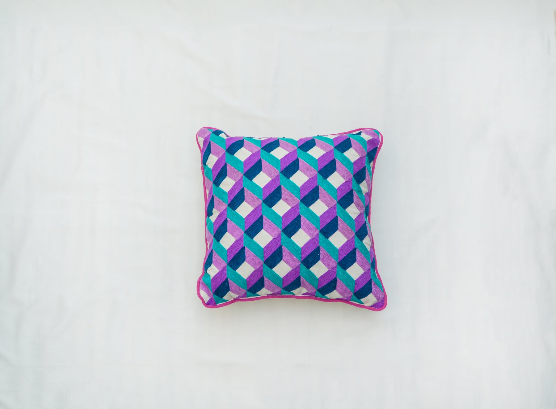 XOXO Embroidered cushion cover in pure cotton casement fabric in vibrant shades of Pink & Red to elevate your spaces.