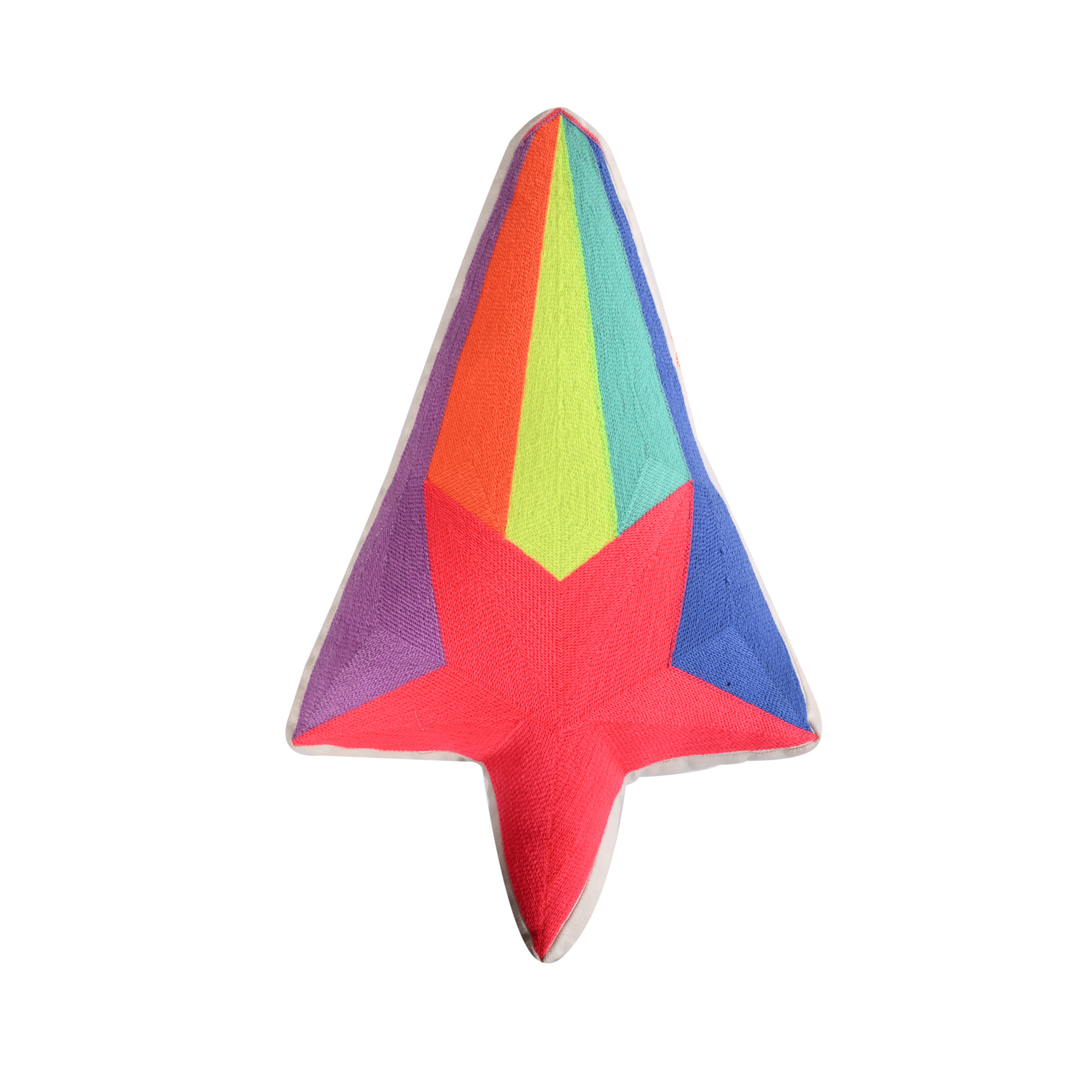 Shooting Star Shaped multi-color embroidered ready-to-use throw Pillow crafted in thick 100% cotton casement fabric with vibrant hues to elevate your personal spaces. Perfect for adding a cheerful and whimsical charm to Living Rooms, Bedrooms, Couches, or Children's Rooms.